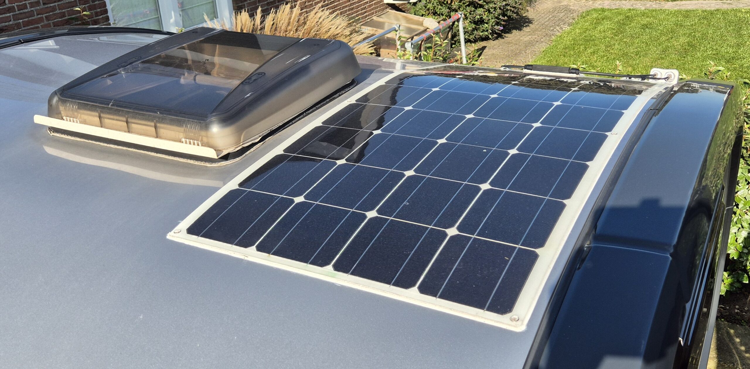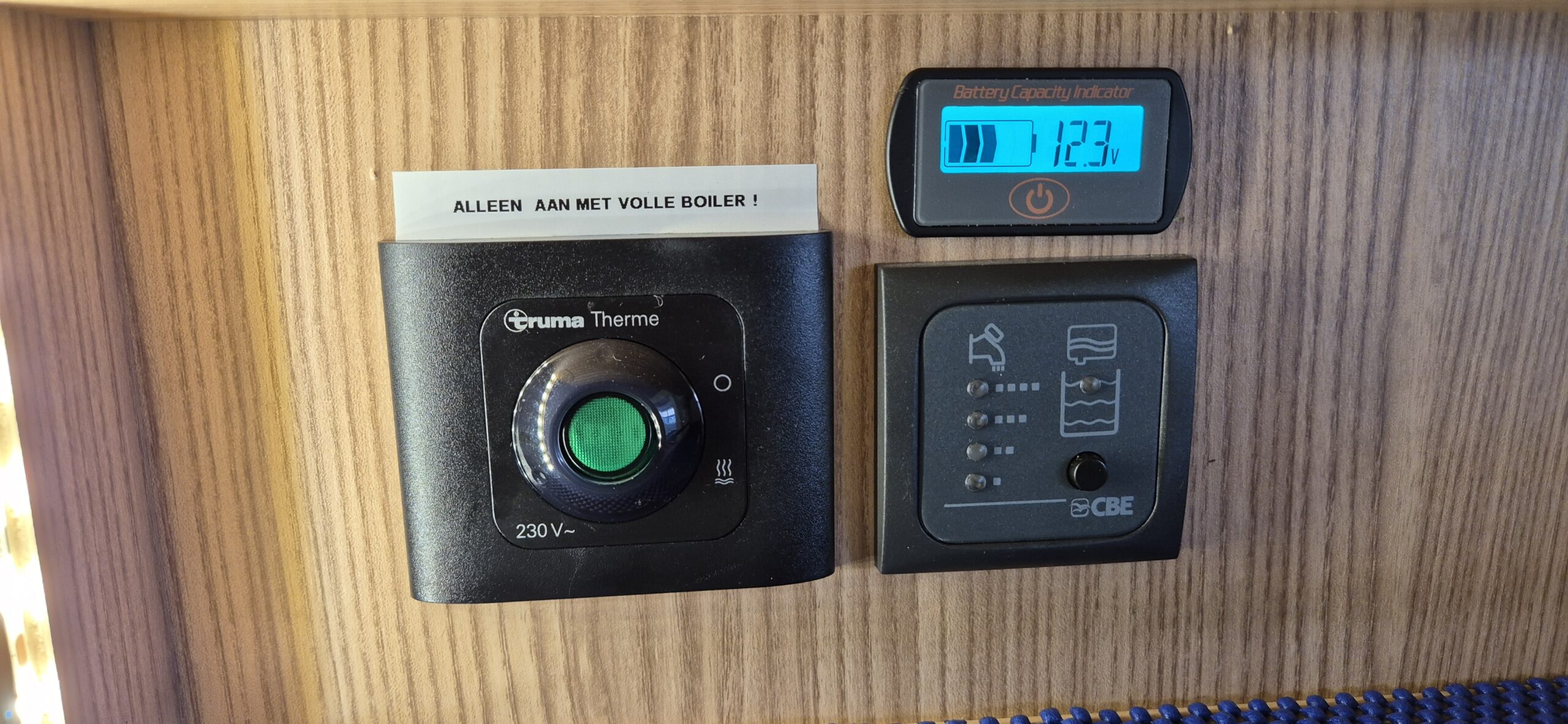 De caravan kan in eigen stroom (12v) voorzien m.b.v. een zonnepaneel en accu, zodat u ’s avonds nog licht en stroom heeft om uw telefoon e.d. op te kunnen laden.
