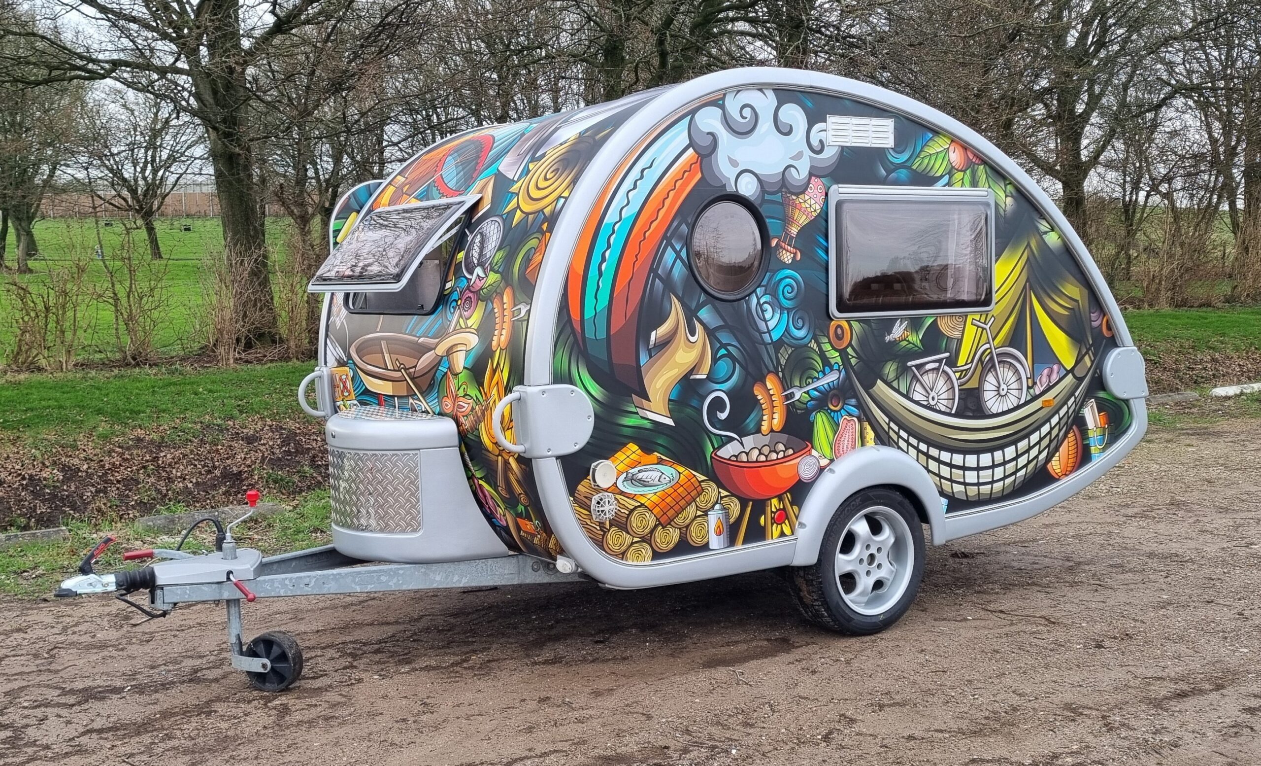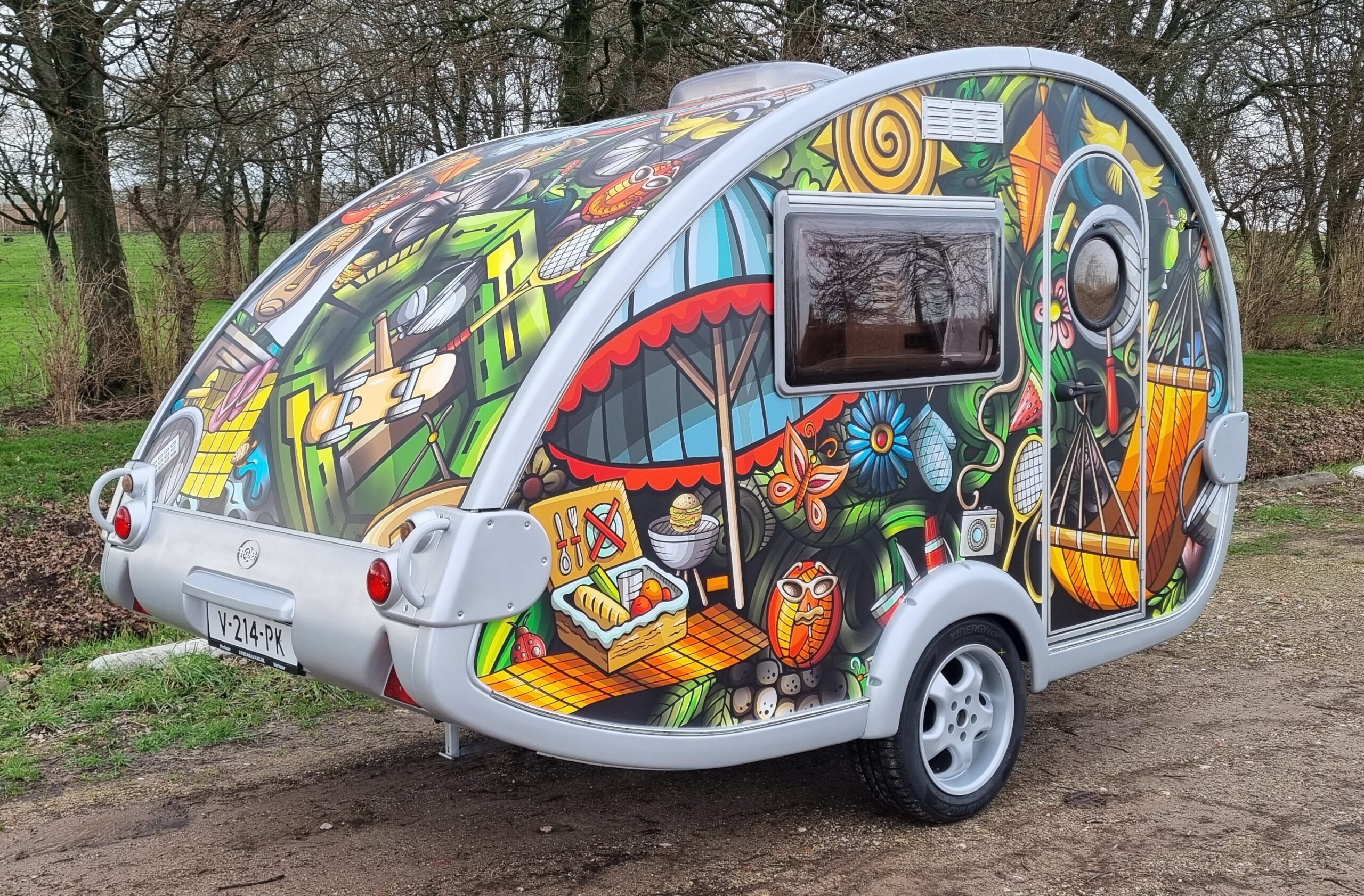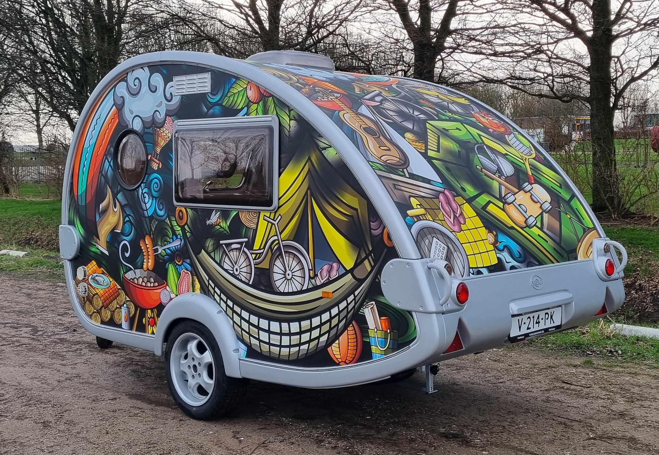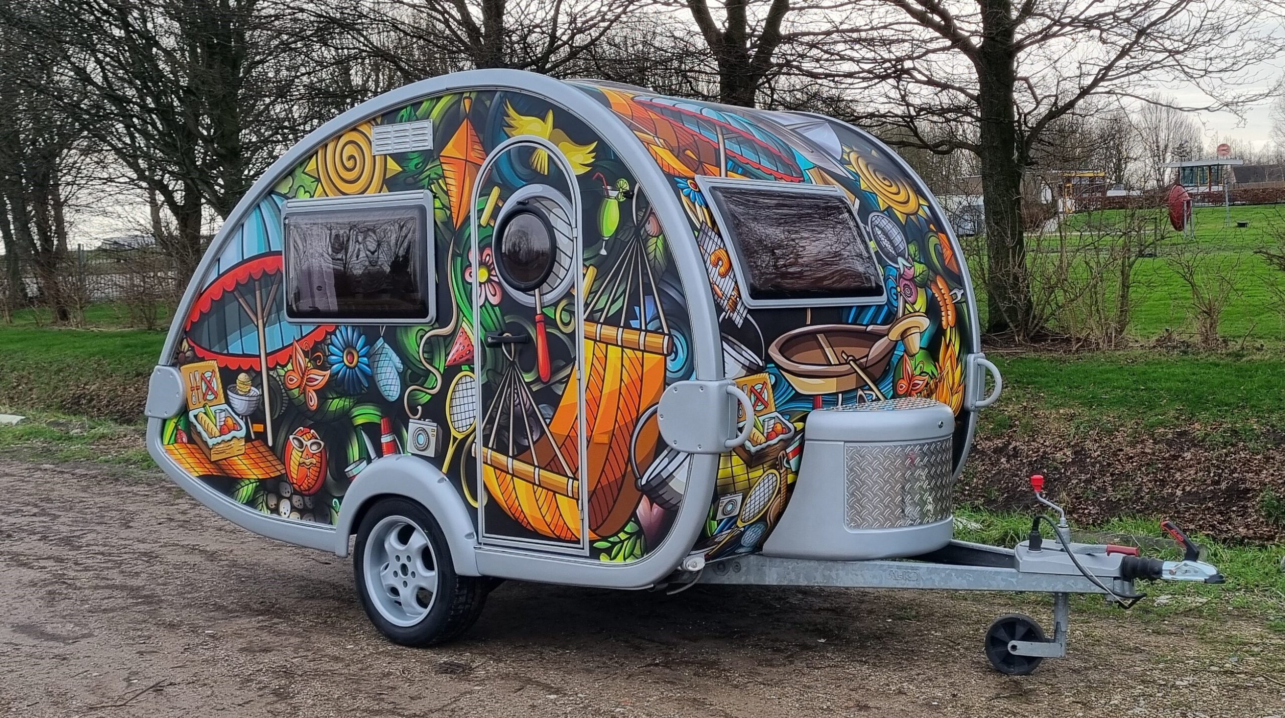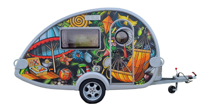 Van deze tab caravan ook wel de teardrop genoemd is er maar 1 en is bij ons te huur. Te leuk om te laten staan!